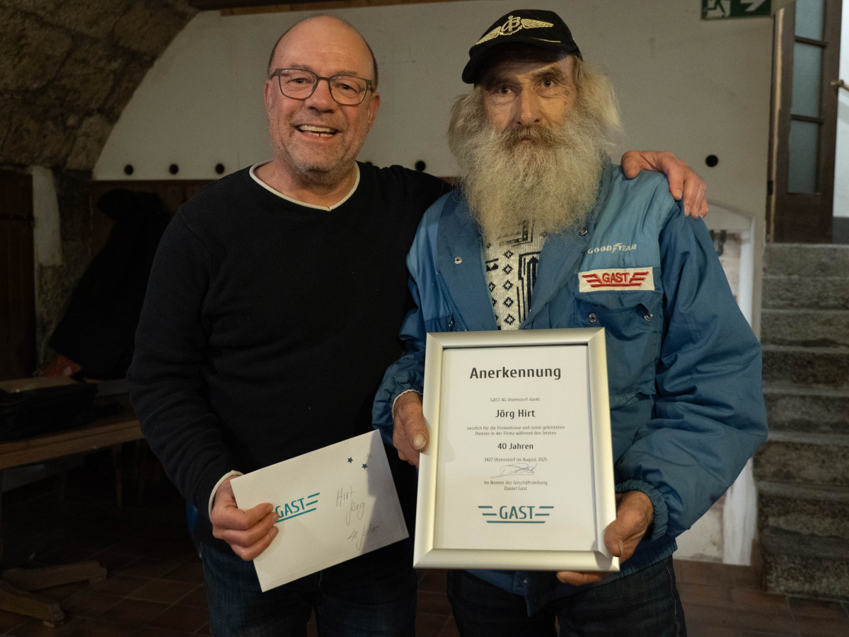 Vielen Dank für eure langjährige Treue, und auf viele weitere Jahre Erfolg in der GAST AG Utzenstorf!