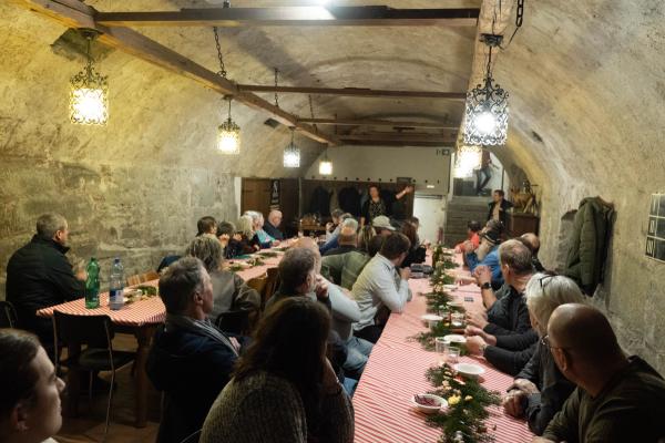 Sie wurden mit einem feinen Raclette-Abend im Schlosskeller unter dem Schloss überrascht. Alle konnten sich den Bauch vollschlagen, und am Ende wurden unsere langjährigen Mitarbeitenden mit einem Zertifikat ausgezeichnet.