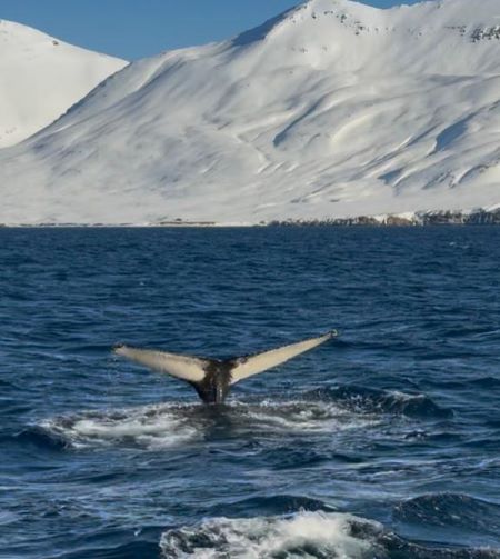 Als Tages-Highlight sind wir ab Hauganes mit einem ehemaligen Fischkutter aufs Meer gefahren und konnten einen Wal beobachten - was für ein Erlebniss. Dann sind weitergereist nach Siglufjordur, auch wunderschön an einem Fjord.
