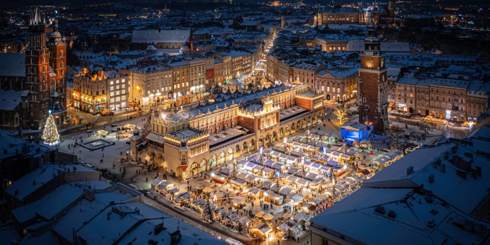 Vom Rynek Glówny mit den Tuchhallen bis zum Wawel-Hügel: Krakau zeigt sich im Advent von seiner schönsten Seite. Auf dem Weihnachtsmarkt erwarten Sie Handwerkskunst, Lichterglanz und duftende Spezialitäten.